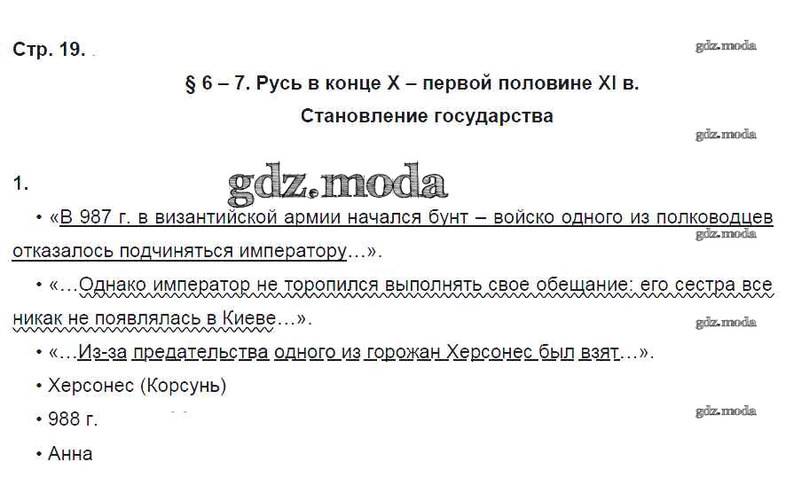 ГДЗ решение к заданию № 19 История России 6 класс рабочая тетрадь Клоков В.А. (к уч. Андреева) Дрофа 2018 ФГОС бесплатно на гдз.мода!