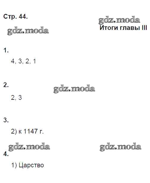 ГДЗ решение к заданию № 44 История России 6 класс рабочая тетрадь Клоков В.А. (к уч. Андреева) Дрофа 2018 ФГОС бесплатно на гдз.мода!