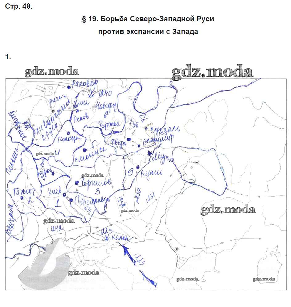 ГДЗ решение к заданию № 48 История России 6 класс рабочая тетрадь Клоков В.А. (к уч. Андреева) Дрофа 2018 ФГОС бесплатно на гдз.мода!