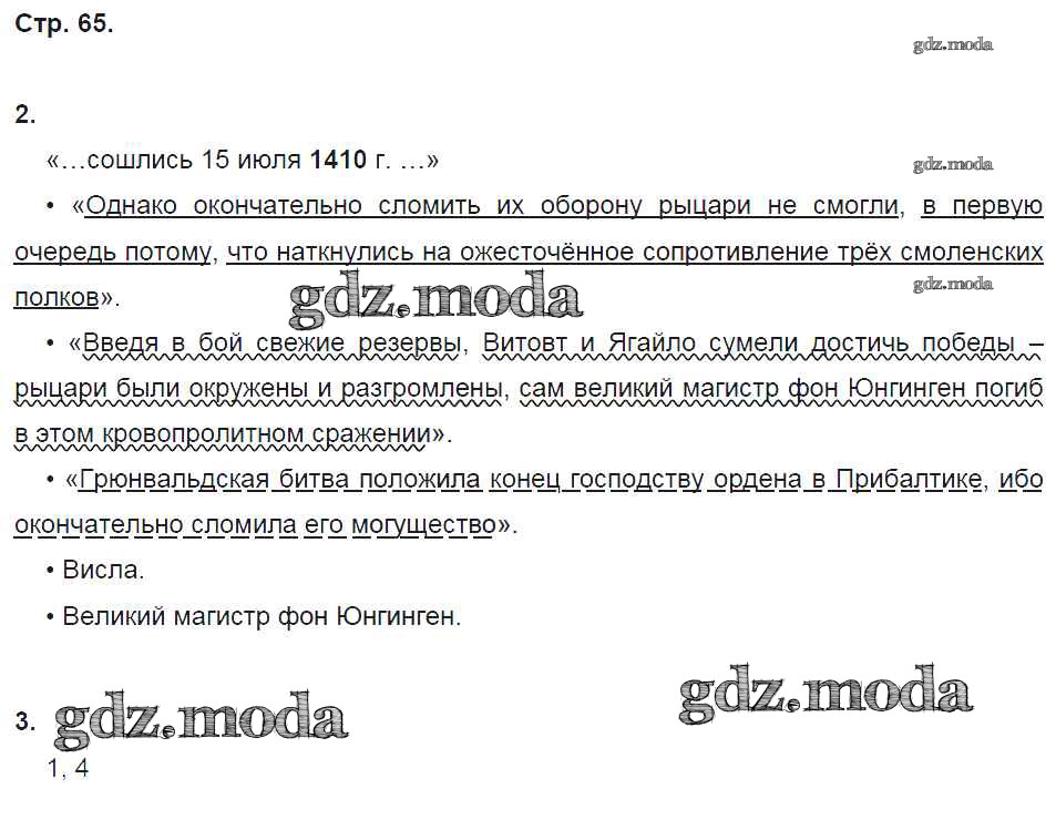 ГДЗ решение к заданию № 65 История России 6 класс рабочая тетрадь Клоков В.А. (к уч. Андреева) Дрофа 2018 ФГОС бесплатно на гдз.мода!