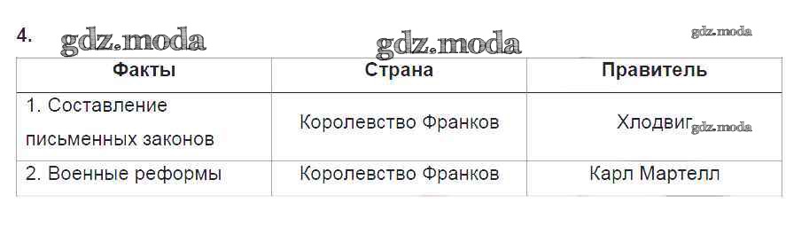 ГДЗ решение к заданию № 4 Всеобщая история. История Средних веков 6 класс рабочая тетрадь Крючкова Е.А. Просвещение 2015 ФГОС бесплатно на гдз.мода!