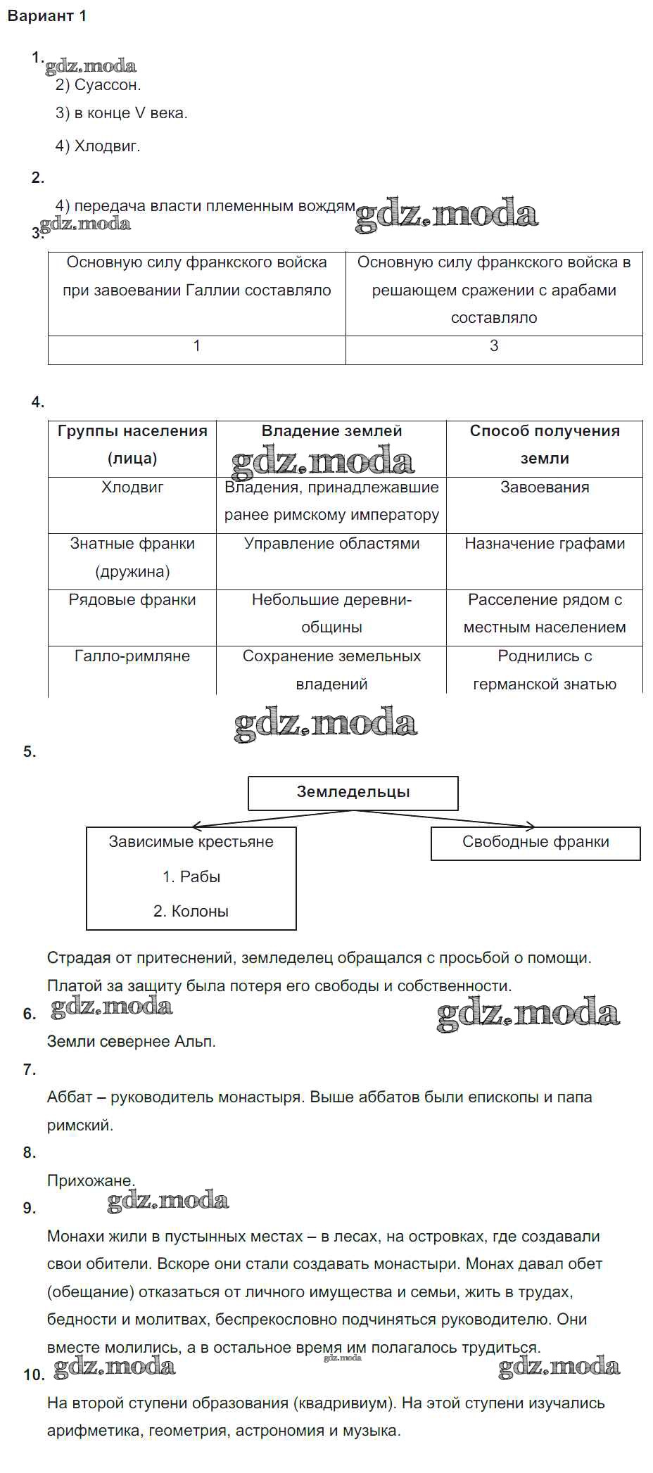 ГДЗ решение к заданию № вариант-1 Всеобщая история. История Средних веков 6 класс проверочные и контрольные работы Крючкова Е.А. Просвещение 2014 ФГОС бесплатно на гдз.мода!