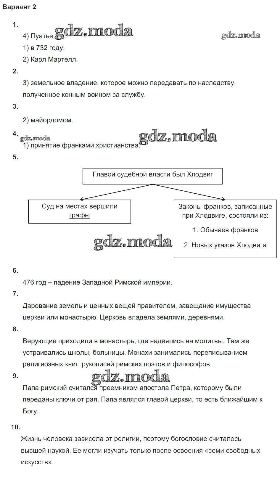 ГДЗ решение к заданию № вариант-2 Всеобщая история. История Средних веков 6 класс проверочные и контрольные работы Крючкова Е.А. Просвещение 2014 ФГОС бесплатно на гдз.мода!