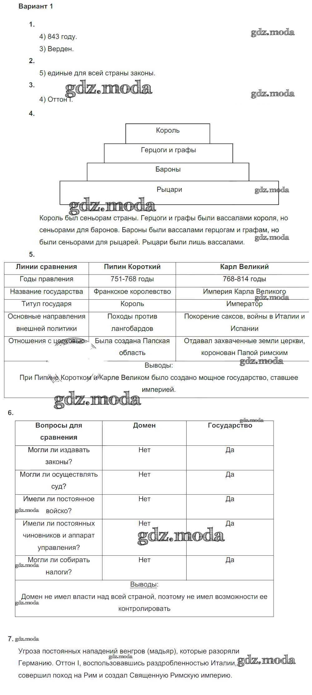 ГДЗ решение к заданию № вариант-1 Всеобщая история. История Средних веков 6 класс проверочные и контрольные работы Крючкова Е.А. Просвещение 2014 ФГОС бесплатно на гдз.мода!