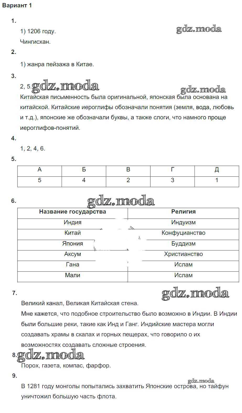 ГДЗ решение к заданию № вариант-1 Всеобщая история. История Средних веков 6 класс проверочные и контрольные работы Крючкова Е.А. Просвещение 2014 ФГОС бесплатно на гдз.мода!