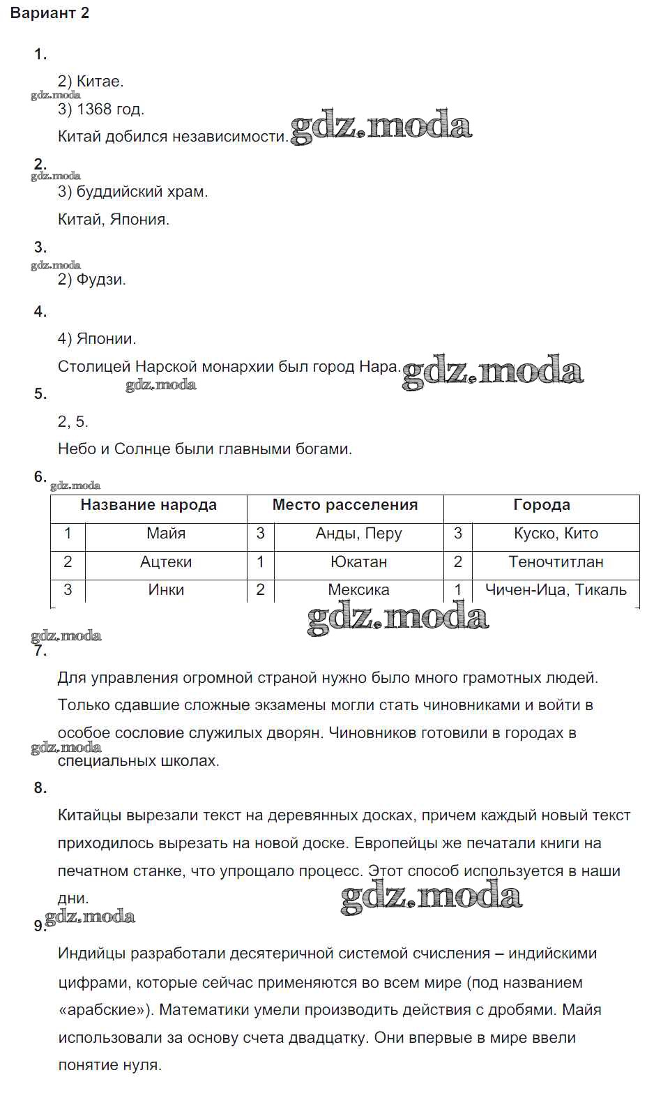 ГДЗ решение к заданию № вариант-2 Всеобщая история. История Средних веков 6 класс проверочные и контрольные работы Крючкова Е.А. Просвещение 2014 ФГОС бесплатно на гдз.мода!