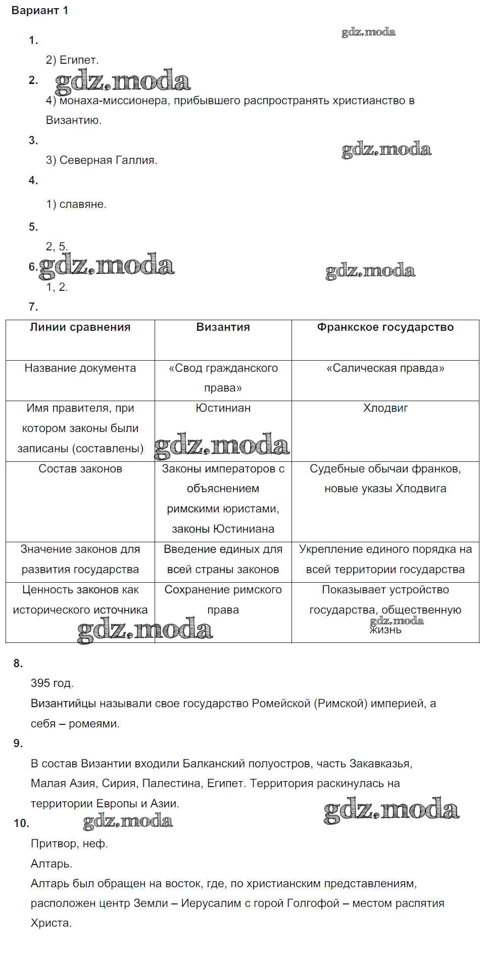ГДЗ решение к заданию № вариант-1 Всеобщая история. История Средних веков 6 класс проверочные и контрольные работы Крючкова Е.А. Просвещение 2014 ФГОС бесплатно на гдз.мода!