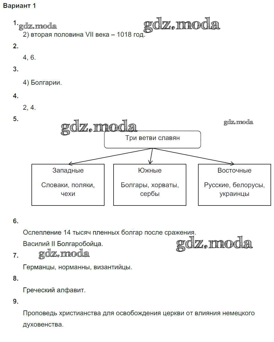 ГДЗ решение к заданию № вариант-1 Всеобщая история. История Средних веков 6 класс проверочные и контрольные работы Крючкова Е.А. Просвещение 2014 ФГОС бесплатно на гдз.мода!