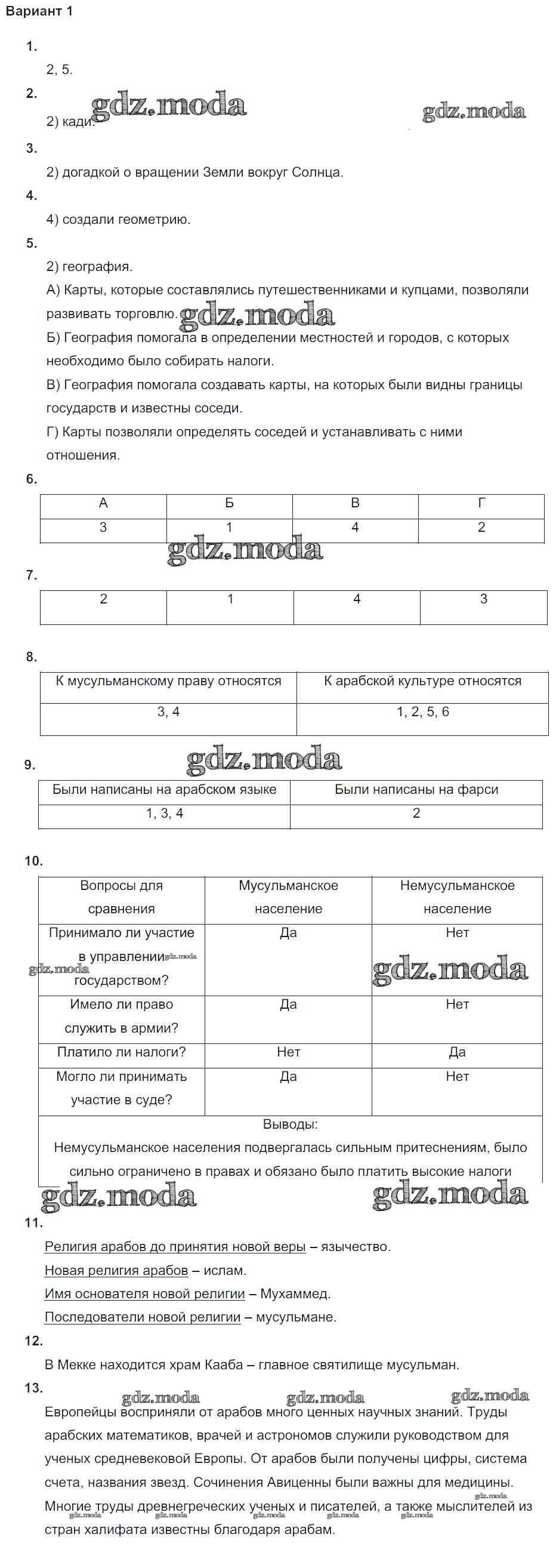 ГДЗ решение к заданию № вариант-1 Всеобщая история. История Средних веков 6 класс проверочные и контрольные работы Крючкова Е.А. Просвещение 2014 ФГОС бесплатно на гдз.мода!