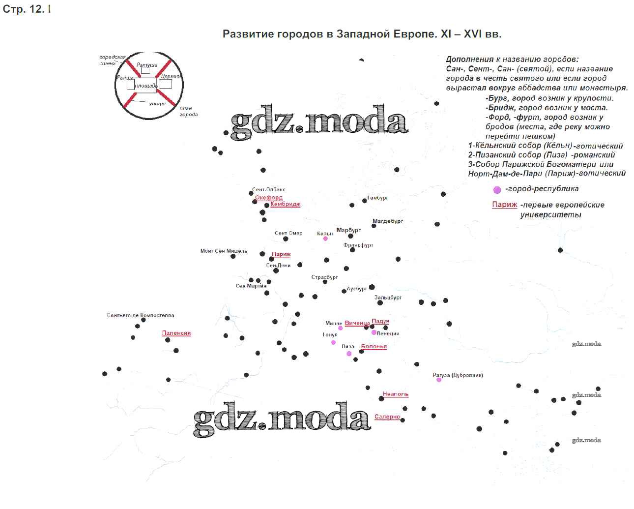 ГДЗ решение к заданию № 12 История Средних веков 6 класс контурные карты Тороп В.В. Дрофа 2020 ФГОС бесплатно на гдз.мода!