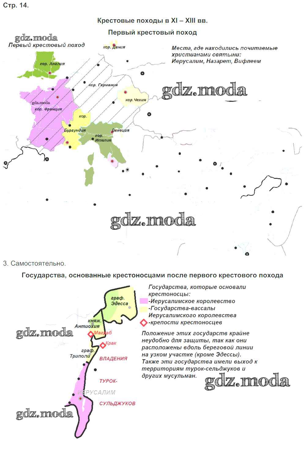 ГДЗ решение к заданию № 14 История Средних веков 6 класс контурные карты Тороп В.В. Дрофа 2020 ФГОС бесплатно на гдз.мода!