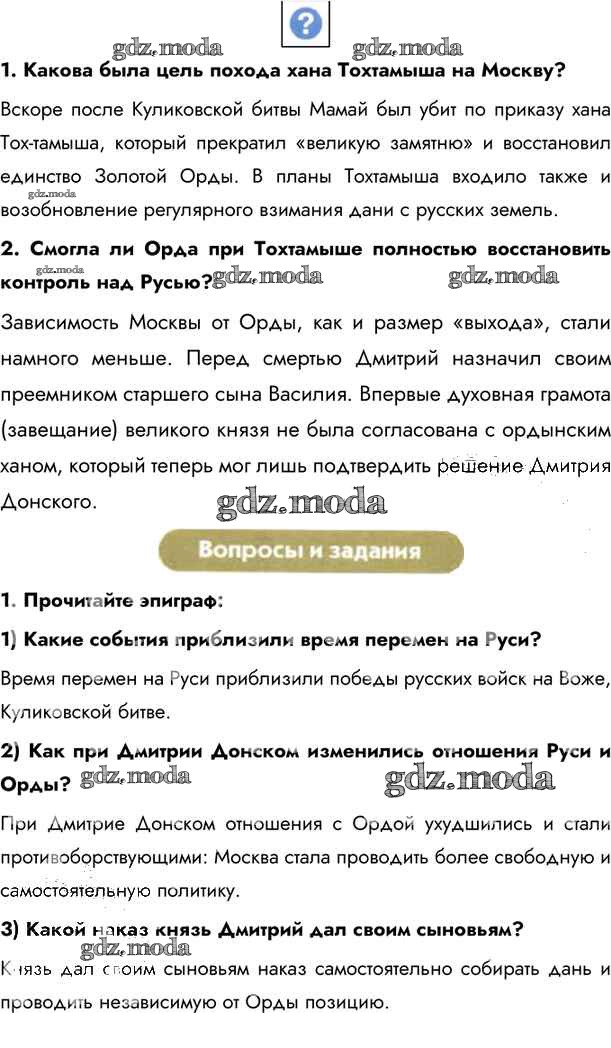 ОТВЕТ на задание № стр.204 Учебник по Истории 6 класс Андреев Вертикаль