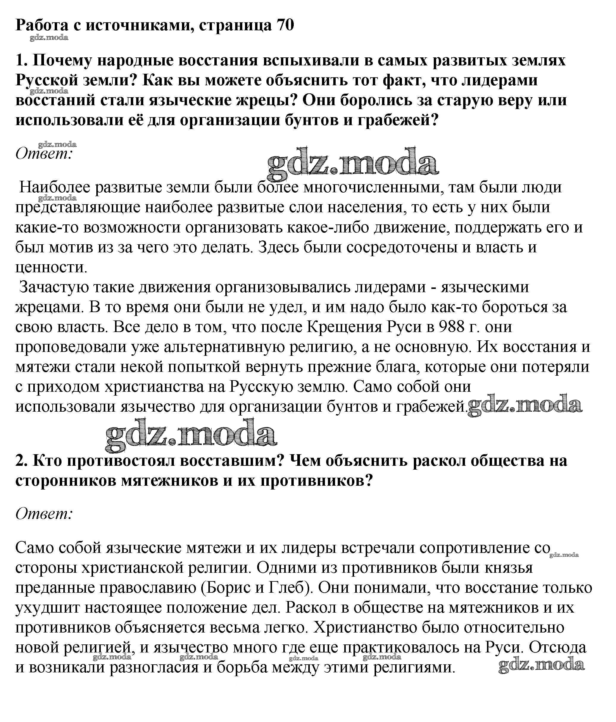 ОТВЕТ на задание № стр.70 Учебник по Истории 6 класс Андреев Вертикаль