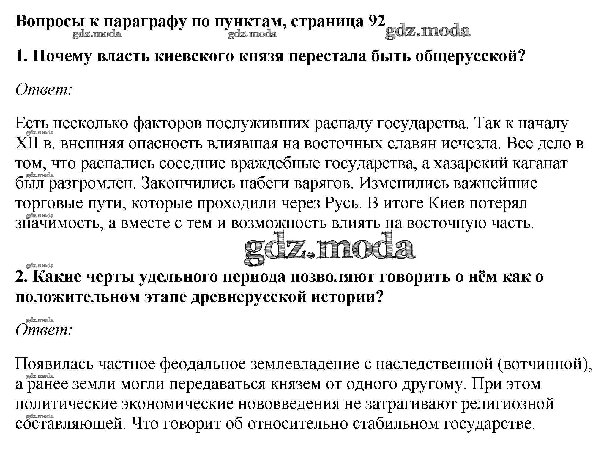 ОТВЕТ на задание № стр.92 Учебник по Истории 6 класс Андреев Вертикаль