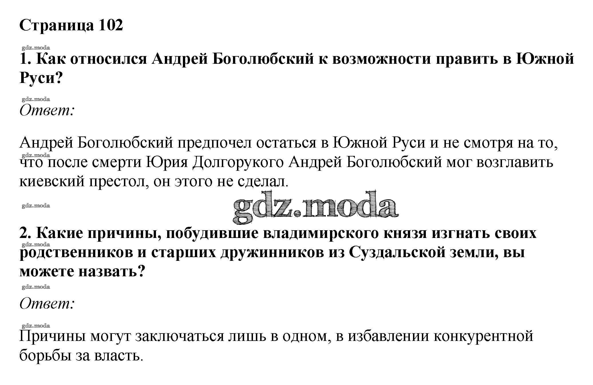 ОТВЕТ на задание № стр.102 Учебник по Истории 6 класс Андреев Вертикаль
