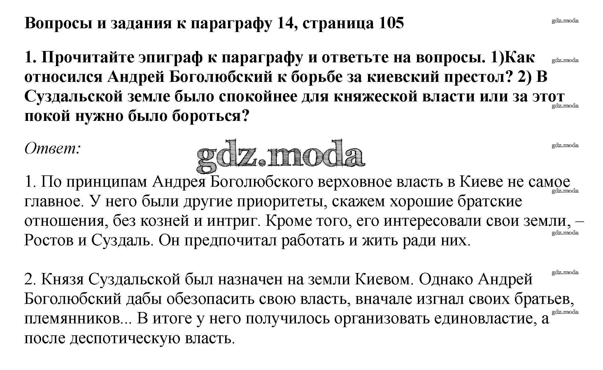 ОТВЕТ на задание № стр.105 Учебник по Истории 6 класс Андреев Вертикаль