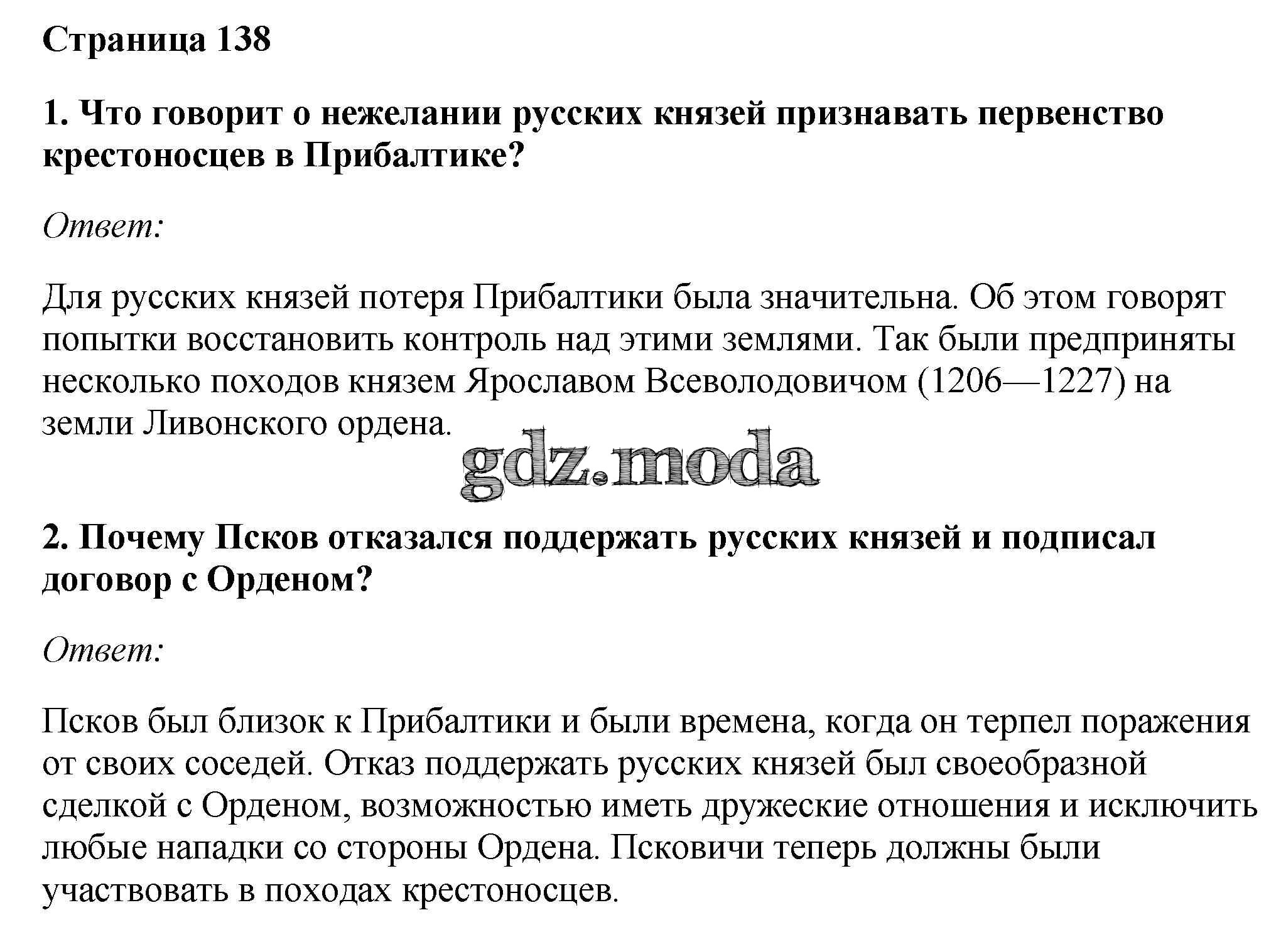 ОТВЕТ на задание № стр.138 Учебник по Истории 6 класс Андреев Вертикаль