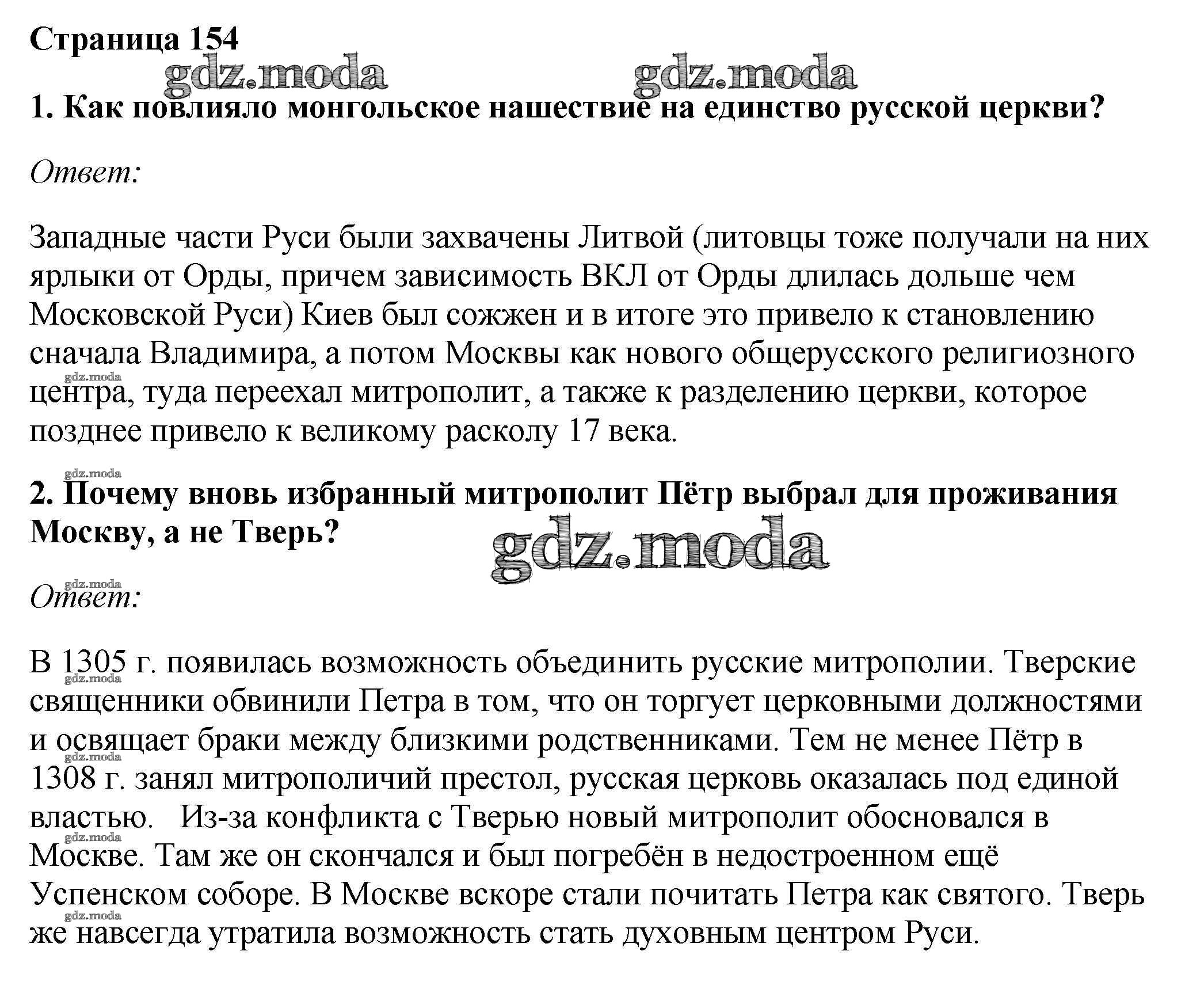 ОТВЕТ на задание № стр.154 Учебник по Истории 6 класс Андреев Вертикаль