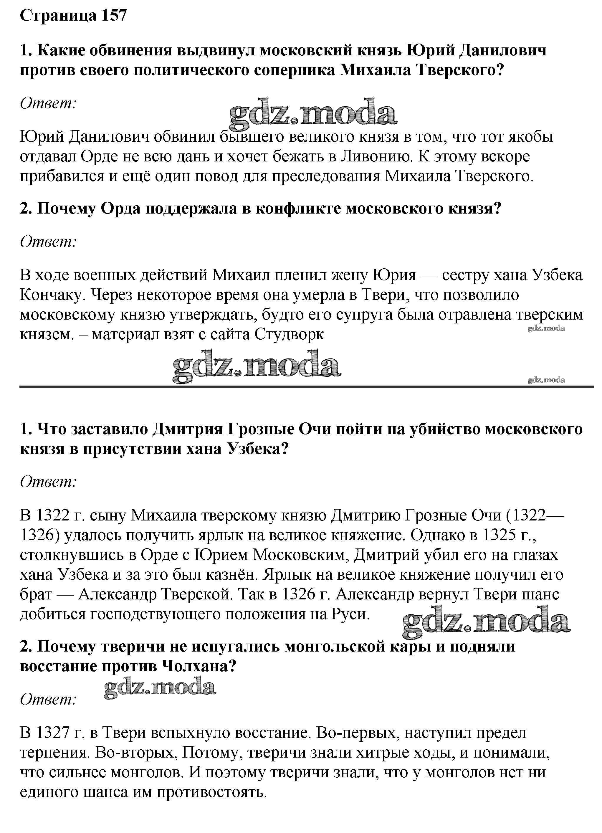ОТВЕТ на задание № стр.157 Учебник по Истории 6 класс Андреев Вертикаль
