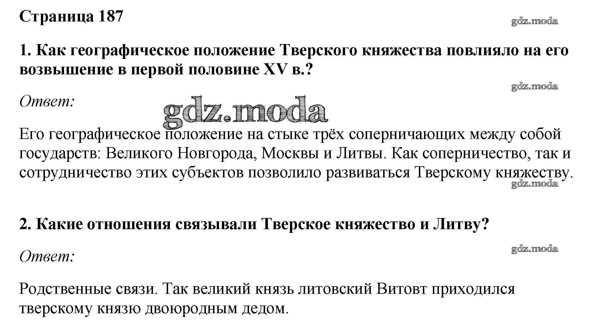 ОТВЕТ на задание № стр.187 Учебник по Истории 6 класс Андреев Вертикаль
