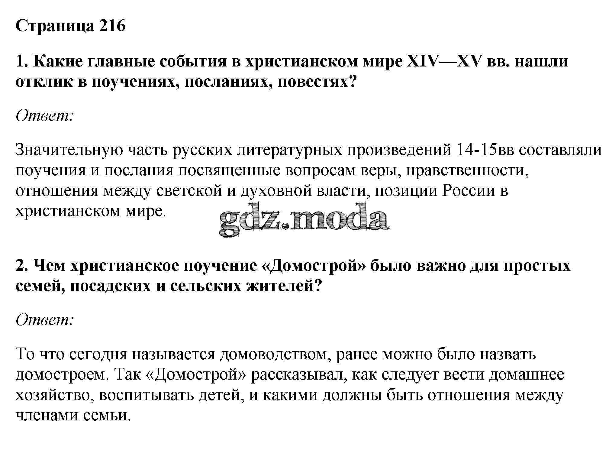ОТВЕТ на задание № стр.216 Учебник по Истории 6 класс Андреев Вертикаль
