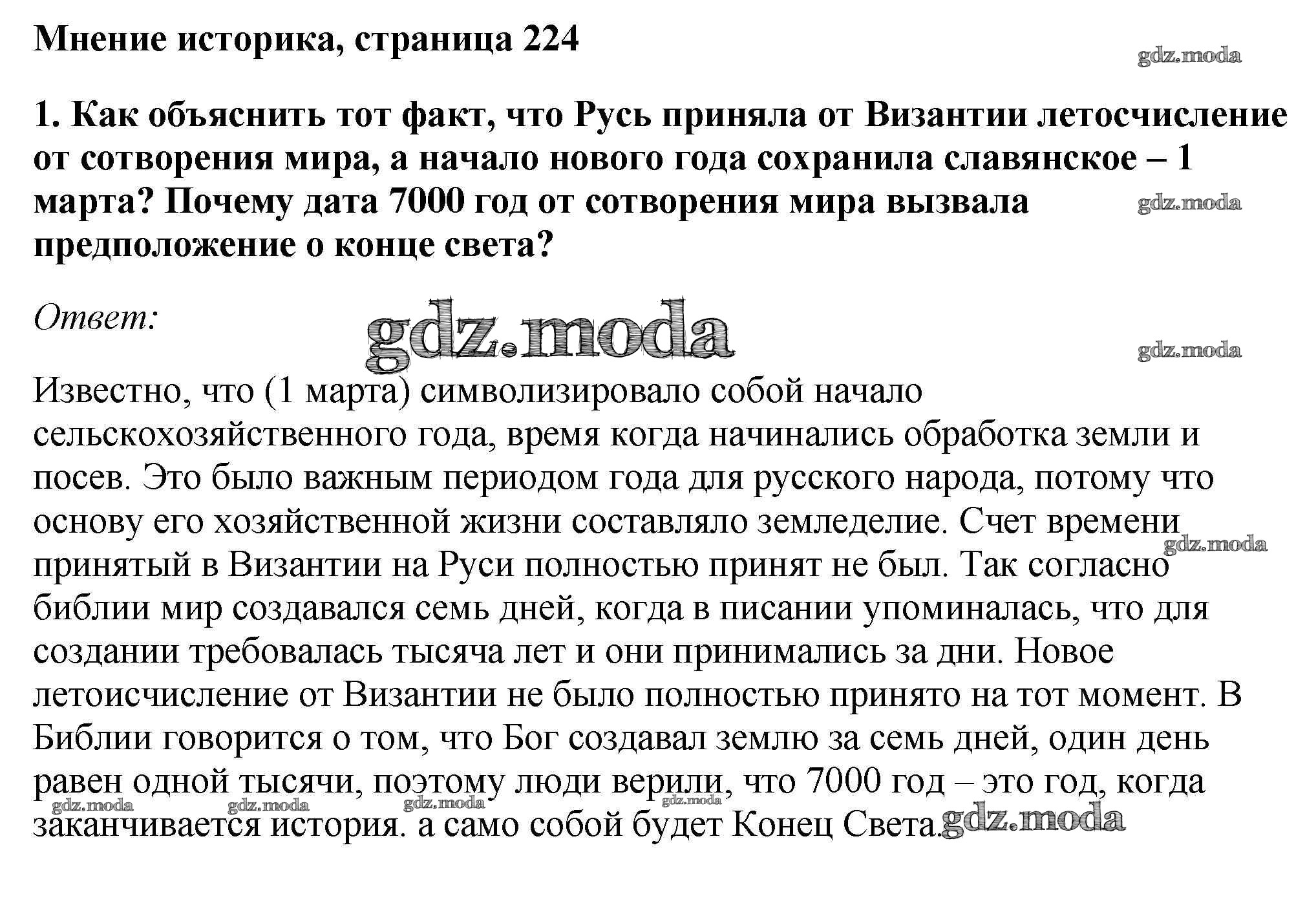 ОТВЕТ на задание № стр.224 Учебник по Истории 6 класс Андреев Вертикаль