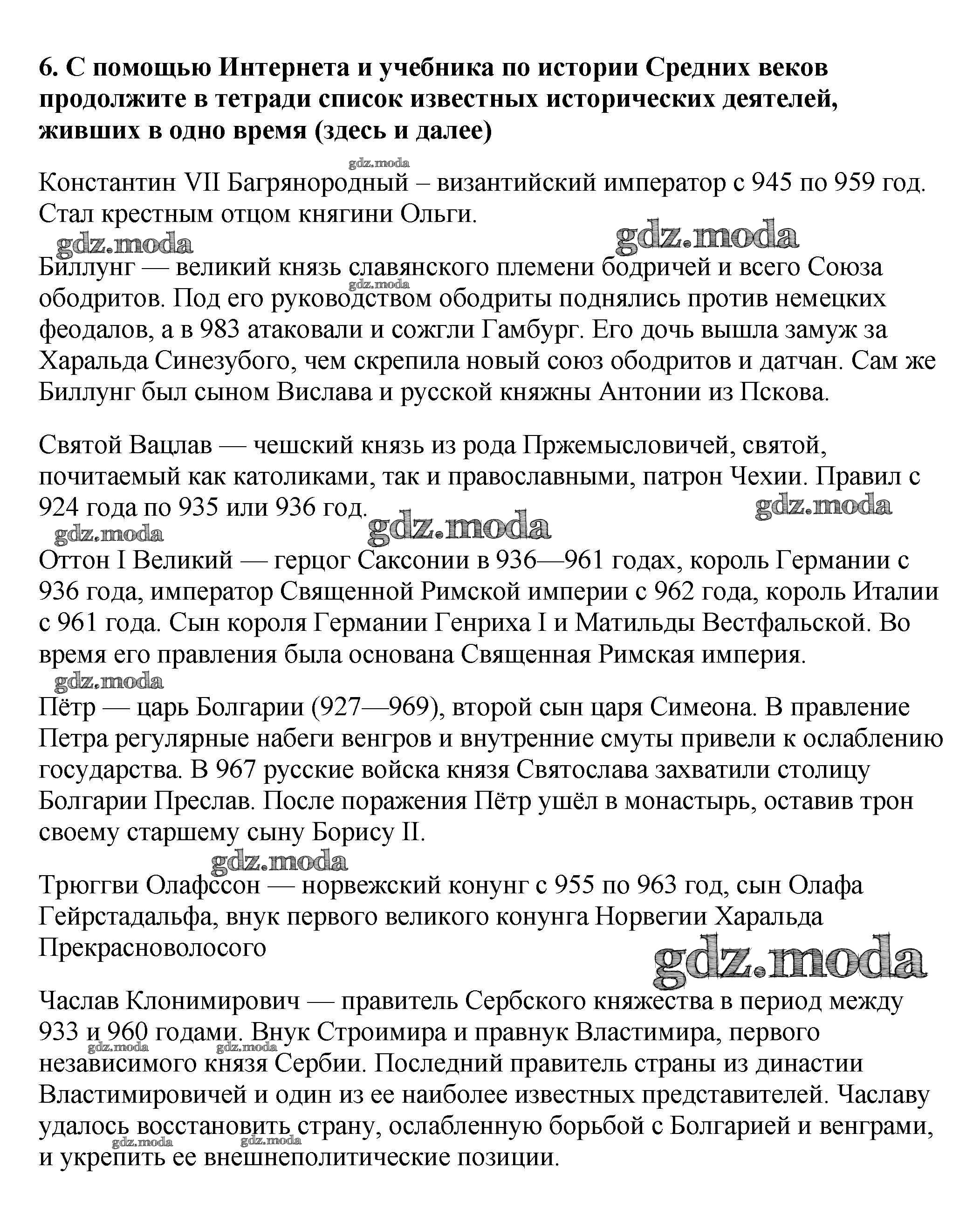 ГДЗ решение к заданию № 6 История России 6 класс Арсентьев Н.М. Просвещение 2016 Часть 1, Часть 2 ФГОС бесплатно на гдз.мода!