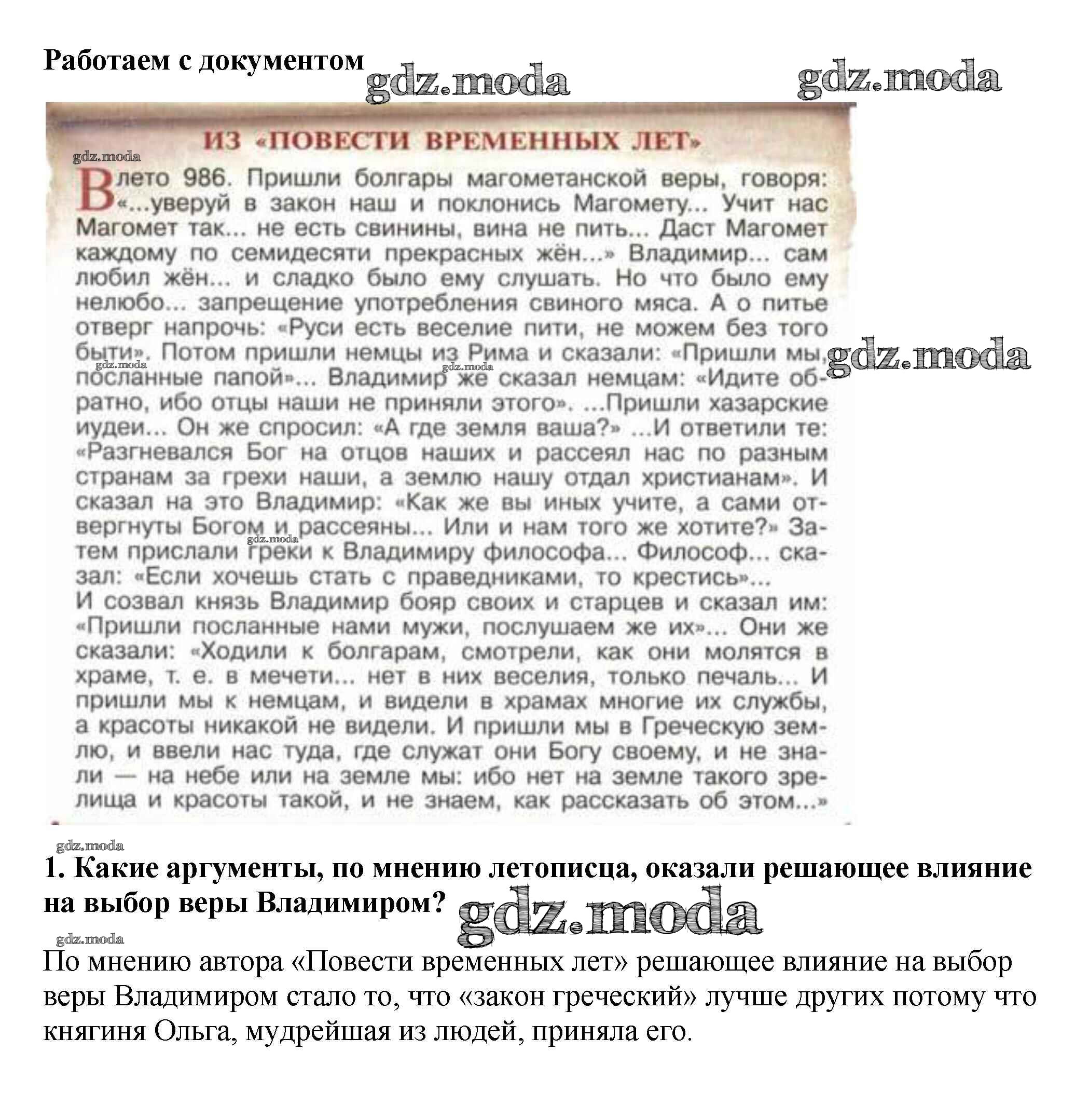 ГДЗ решение к заданию № 1 История России 6 класс Арсентьев Н.М. Просвещение 2016 Часть 1, Часть 2 ФГОС бесплатно на гдз.мода!