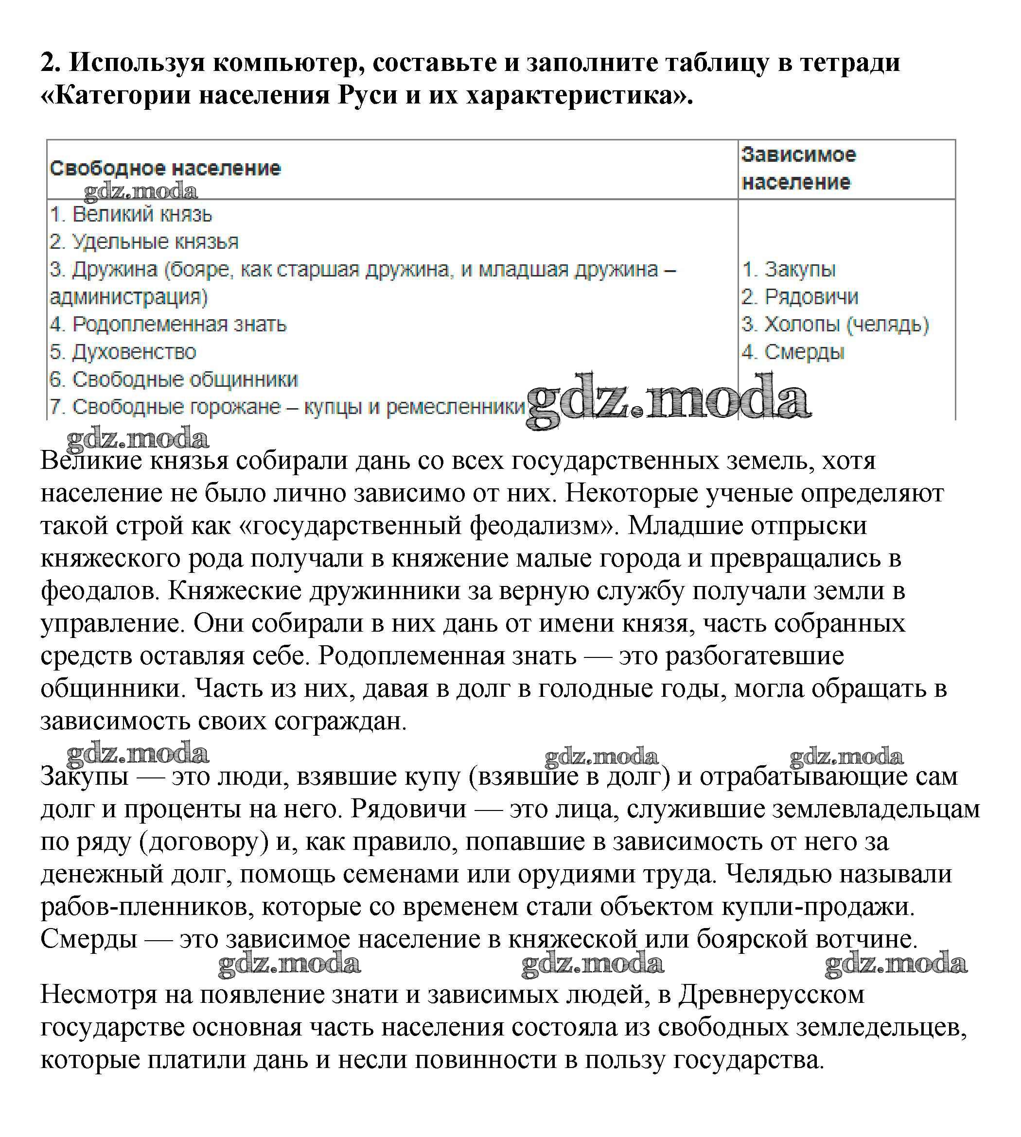 ГДЗ решение к заданию № 2 История России 6 класс Арсентьев Н.М. Просвещение 2016 Часть 1, Часть 2 ФГОС бесплатно на гдз.мода!