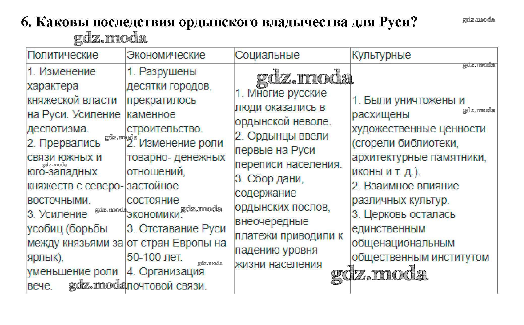 ГДЗ решение к заданию № 6 История России 6 класс Арсентьев Н.М. Просвещение 2016 Часть 1, Часть 2 ФГОС бесплатно на гдз.мода!
