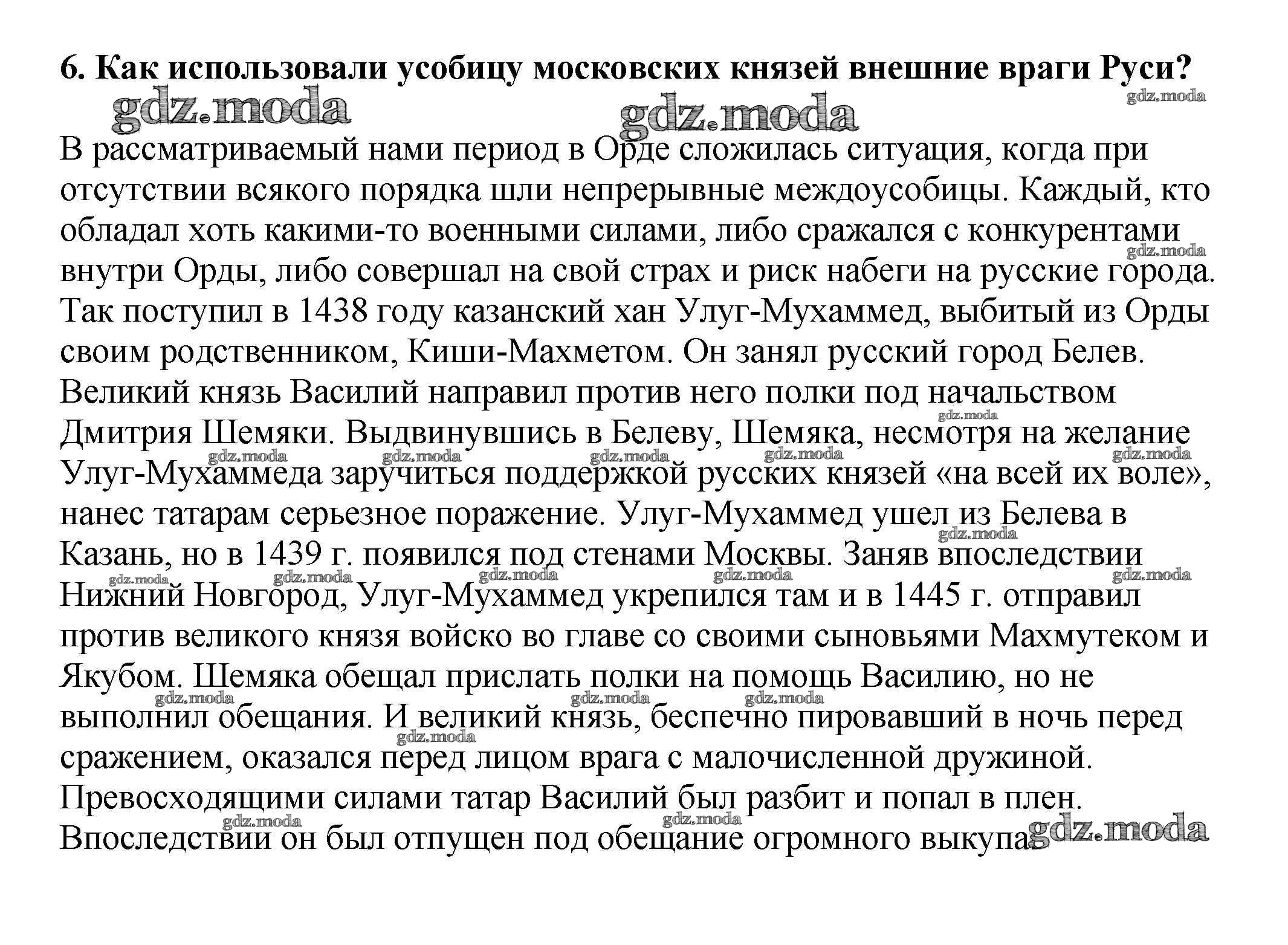 ГДЗ решение к заданию № 6 История России 6 класс Арсентьев Н.М. Просвещение 2016 Часть 1, Часть 2 ФГОС бесплатно на гдз.мода!
