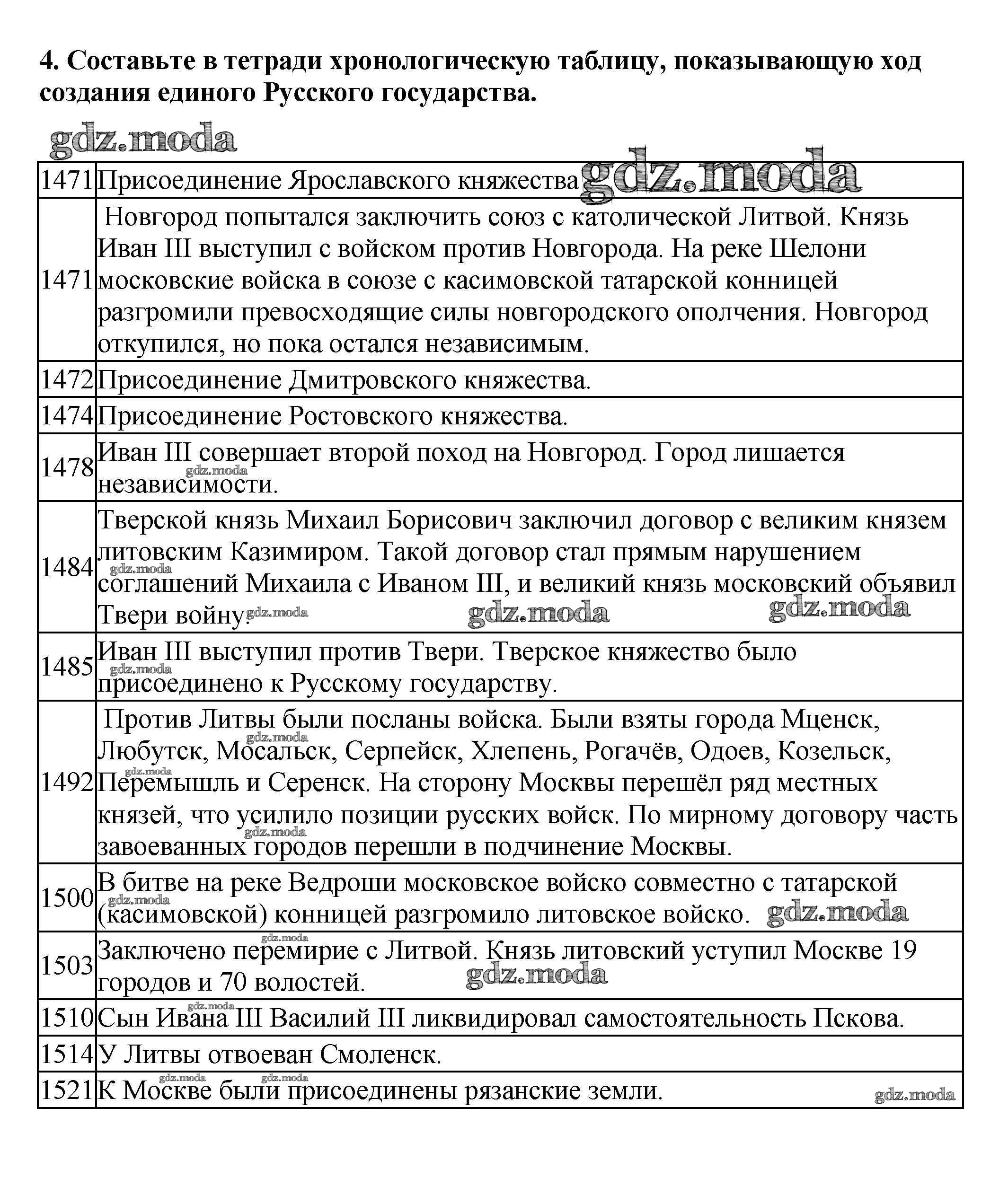 ГДЗ решение к заданию № 4 История России 6 класс Арсентьев Н.М. Просвещение 2016 Часть 1, Часть 2 ФГОС бесплатно на гдз.мода!