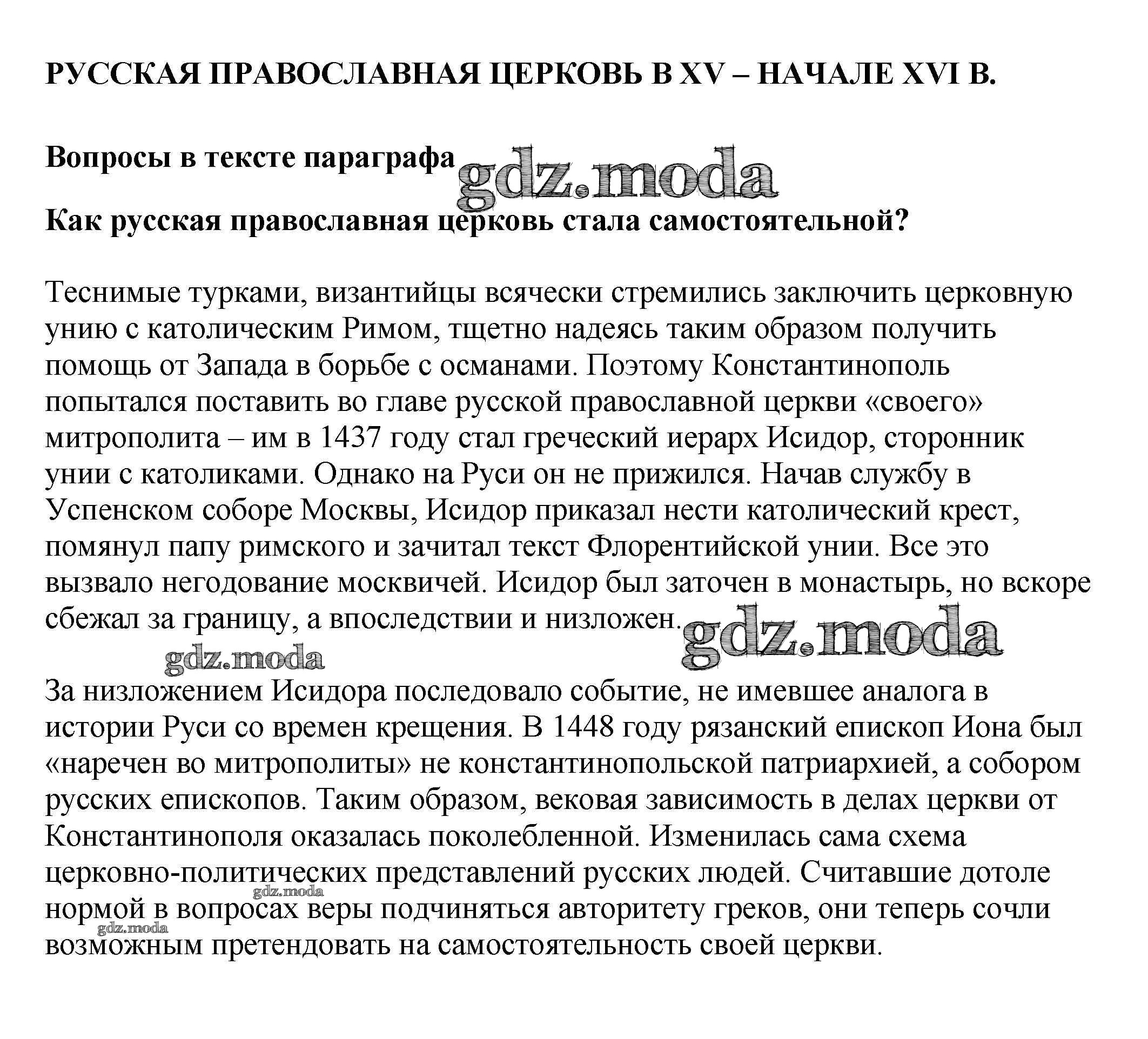 русская православная церковь в XV — начале XVI в. / вопрос в тексте / 1