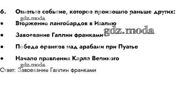ГДЗ решение к заданию № 6 Всеобщая история. История Средних веков 6 класс Бойцов М.А. Русское слово 2019 ФГОС бесплатно на гдз.мода!
