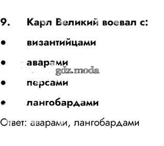 ГДЗ решение к заданию № 9 Всеобщая история. История Средних веков 6 класс Бойцов М.А. Русское слово 2019 ФГОС бесплатно на гдз.мода!