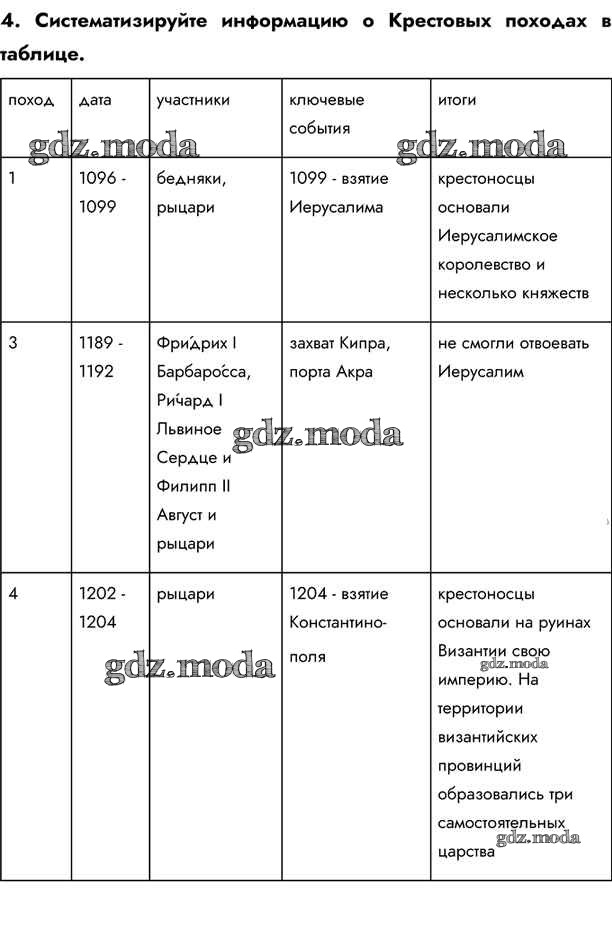 ГДЗ решение к заданию № 4 Всеобщая история. История Средних веков 6 класс Бойцов М.А. Русское слово 2019 ФГОС бесплатно на гдз.мода!