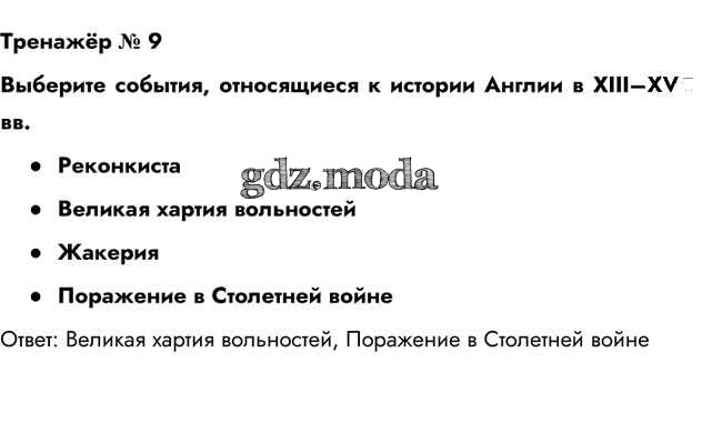ГДЗ решение к заданию № 9 Всеобщая история. История Средних веков 6 класс Бойцов М.А. Русское слово 2019 ФГОС бесплатно на гдз.мода!