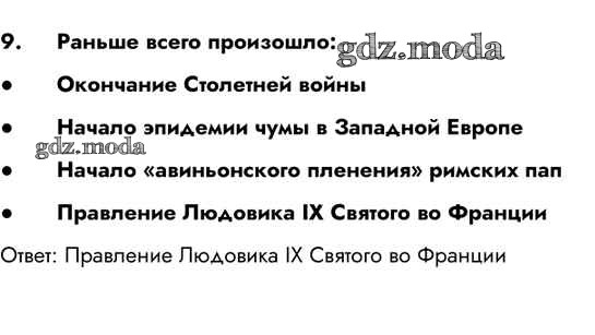 ГДЗ решение к заданию № 9 Всеобщая история. История Средних веков 6 класс Бойцов М.А. Русское слово 2019 ФГОС бесплатно на гдз.мода!