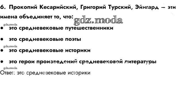 ГДЗ решение к заданию № 6 Всеобщая история. История Средних веков 6 класс Бойцов М.А. Русское слово 2019 ФГОС бесплатно на гдз.мода!