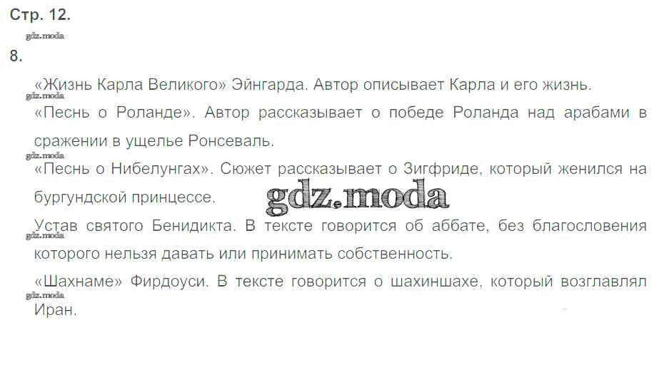 ГДЗ решение к заданию № стр. 12 История Средних веков 6 класс тетрадь-тренажер Ведюшкин В.А. Просвещение 2017 ФГОС бесплатно на гдз.мода!