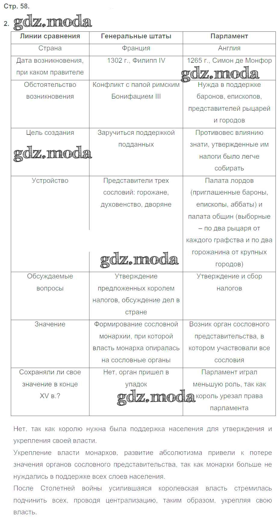 ГДЗ решение к заданию № стр. 58 История Средних веков 6 класс тетрадь-тренажер Ведюшкин В.А. Просвещение 2017 ФГОС бесплатно на гдз.мода!
