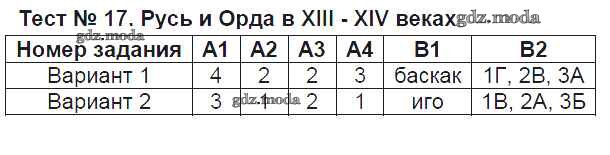 ГДЗ решение к заданию № Тест №17. Русь и Орда в XIII - XIV веках История России 6 класс контрольно-измерительные материалы Волкова К.В. ВАКО 2017 ФГОС бесплатно на гдз.мода!