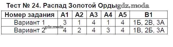 ГДЗ решение к заданию № Тест №24. Распад Золотой Орды История России 6 класс контрольно-измерительные материалы Волкова К.В. ВАКО 2017 ФГОС бесплатно на гдз.мода!