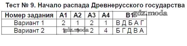 ГДЗ решение к заданию № Тест №9. Начало распада Древнерусского государства История России 6 класс контрольно-измерительные материалы Волкова К.В. ВАКО 2017 ФГОС бесплатно на гдз.мода!