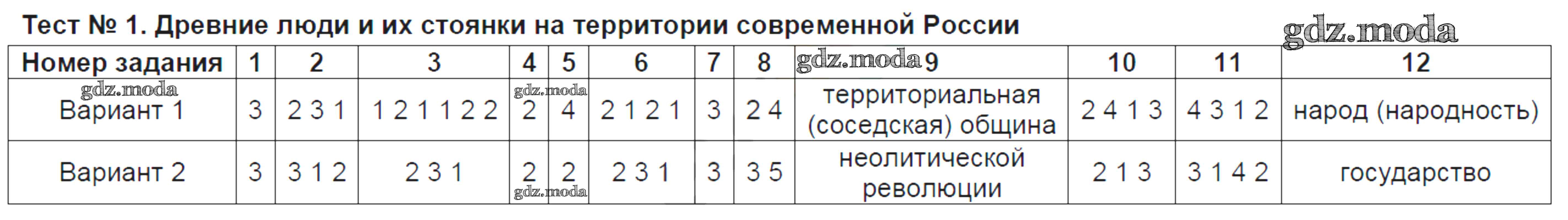 ГДЗ решение к заданию № Тест №1. Древние люди и их стоянки на территории современной России История России 6 класс Тесты Воробьева С.Е. (к уч. Торкунова) Экзамен 2017 Часть 1, Часть 2 ФГОС бесплатно на гдз.мода!