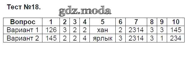 ГДЗ решение к заданию № Тест №18 История России 6 класс Тесты Воробьева С.Е. (к уч. Торкунова) Экзамен 2017 Часть 1, Часть 2 ФГОС бесплатно на гдз.мода!