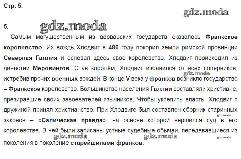 ГДЗ решение к заданию № 5 Всеобщая история. История Средних веков 6 класс рабочая тетрадь с контурными картами Колпаков С.В. (к уч. Пономарева) Дрофа 2017 ФГОС бесплатно на гдз.мода!