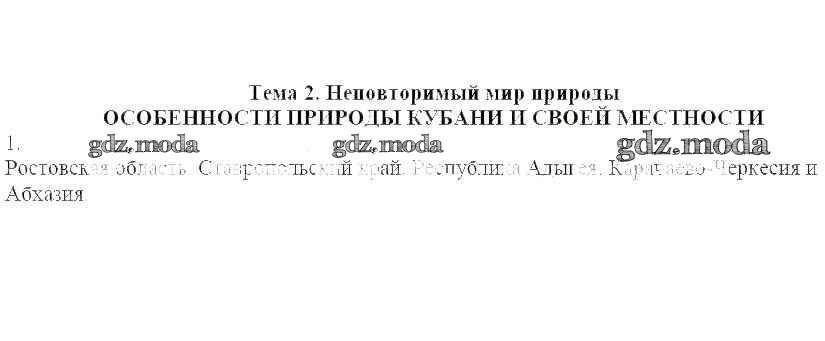 ОТВЕТ на задание № 1 Рабочая тетрадь по Кубановедению 6 класс Близнюк