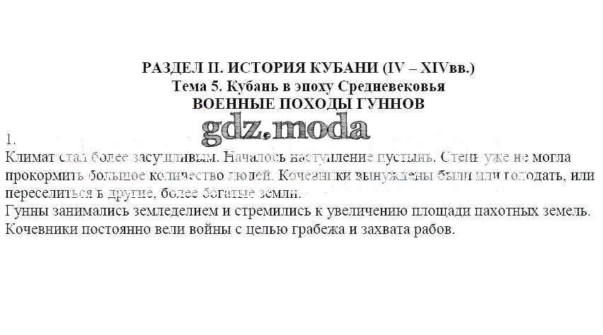 ОТВЕТ на задание № 1 Рабочая тетрадь по Кубановедению 6 класс Близнюк