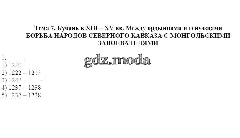 ОТВЕТ на задание № 1 Рабочая тетрадь по Кубановедению 6 класс Близнюк
